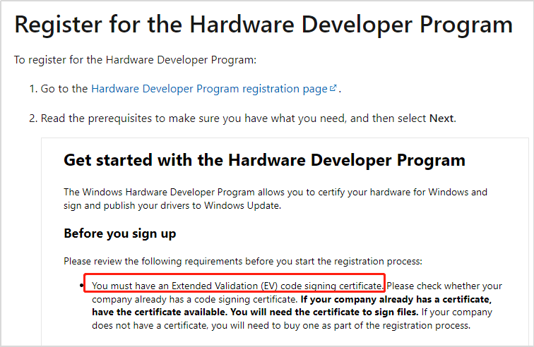 驱动程序开发者必须通过Windows硬件开发者中心门户,向微软提交驱动程序,而注册门户时必须拥有一张有效的EV代码签名证书。无论您的驱动程序计划支持哪个版本的Windows系统,如果需要通过Windows硬件开发者中心门户提交驱动程序,都需要先申请一张EV代码签名证书用于注册门户帐户。