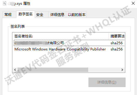 完成WHQL认证后,微软会下发签有“Microsoft Windows Hardware Compatibility Publisher”驱动目录文件,将此文件附在驱动的同一目录下,驱动程序就获得了微软官方的数字签名。