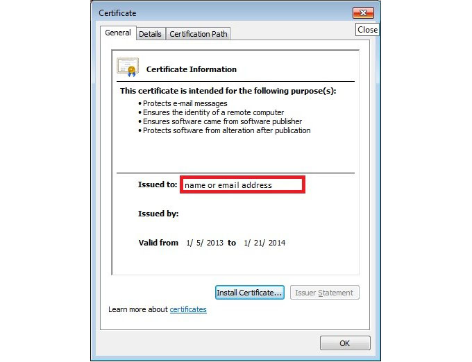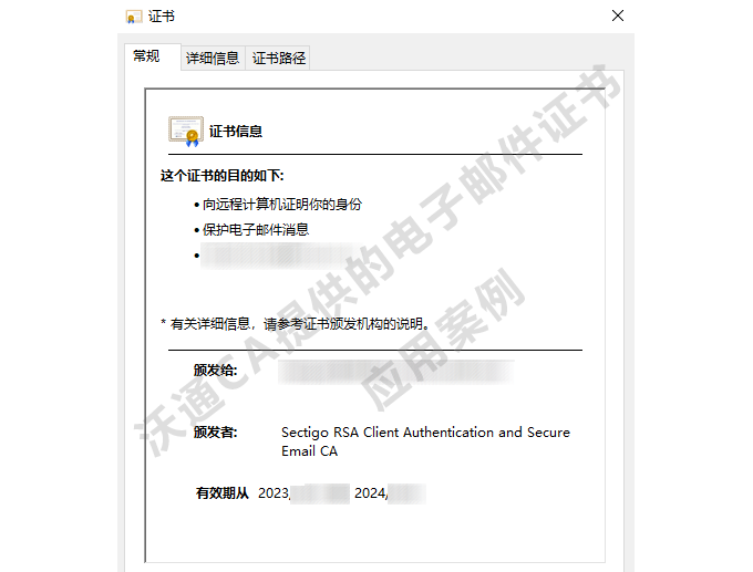 - 证书主题显示已验证的邮箱地址及颁发者;