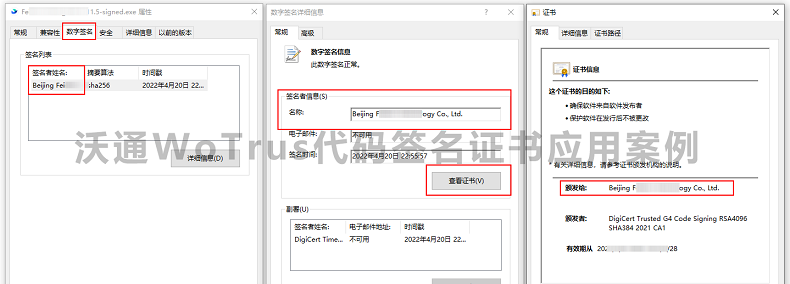用户下载软件程序后,可通过数字签名查看软件发行商的真实身份,直观判断软件来源是否可信;如果软件代码被恶意篡改或注入木马程序,软件数字签名将失效,操作系统将发出警告提示,阻止用户继续安装,让恶意软件及木马程序无法继续执行。