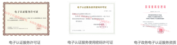 沃通CA是我国依法设立的第三方电子认证服务机构,获得国密局颁发《电子认证使用密码许可证》、工信部颁发《电子认证服务许可证》,获批电子政务电子认证服务资质。