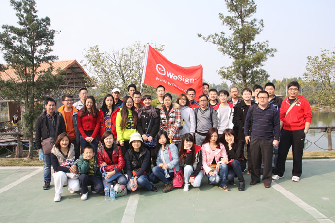 当大家还沉沉浸在欣赏四周美景的时候,很快被集合到中央湖的一侧合影留念。随着一声洪亮的“茄子”声,沃通全体员工生龙活虎的肖像定格在了充满农家风情的新锦记农庄。