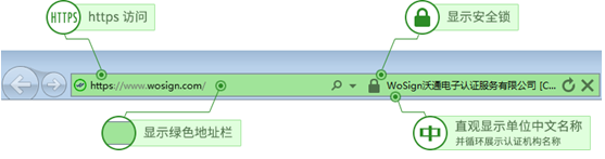 EV SSL证书被称为扩展验证型SSL证书,是因为申请EV SSL证书不仅需要验证域名所有权,按规定提交企业真实身份验证材料,还要求提供更加详细的企业信息(如具体营业地址等信息),并提供具有法律效力的证明文件(如律师函等)。经过EV级别验证的网站,身份真实可靠,浏览器也会对EV验证的网站进行特殊的品牌展示,比如浏览器地址栏显示绿色、直观展示网站所属单位名称等等,展现良好的品牌形象和公信力。