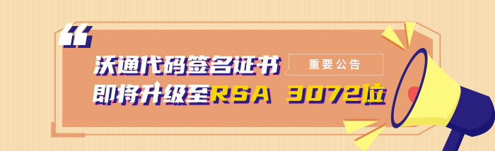 重要公告:沃通代码签名证书即将升级至RSA 3072位