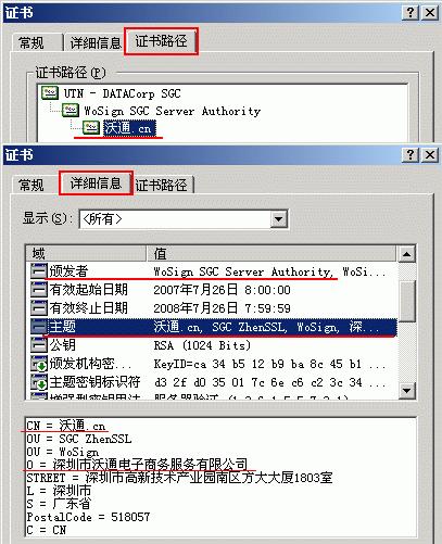 WoSign各种数字证书(包括SSL证书、代码签名证书和客户端证书)的证书内容主题字段(Subject) 全球率先支持世界各地的所有常用语言,只要是Windows操作系统支持的语言,WoSign数字证书都支持。