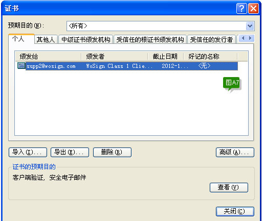 选择证书进入,后见下图A7: