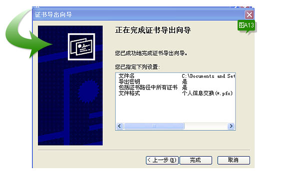 选择证书的保存目录,然后点击“下一步”进入,如下图A13: