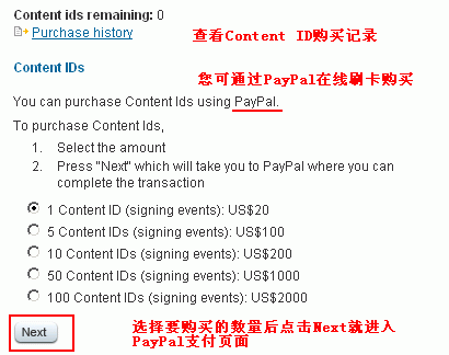 每个内容签名证书只能用一次,签名一个.SIS文件,请根据您的需要购买1、5、10、50、100个内容签名证书(签名事件),如下图2所示,点击“Next”后就进入 PayPal (贝宝)的支付页面,不管您是否有 PayPal 帐户,您都可以在线刷卡(美元信用卡)购买: