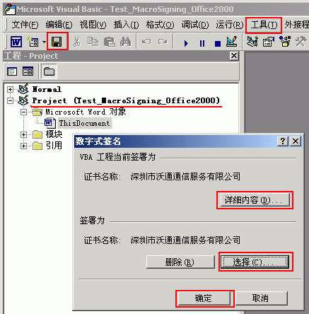使用宏签名证书为文件或宏工程进行数字签名步骤:
