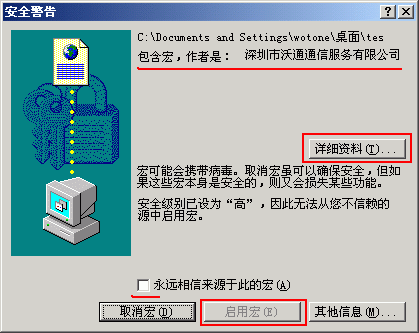 WoSign的微软代码签名证书可以同时用于签名 Office 2000/XP/2003 中的所有宏文件,包括: Word 、 Excel 、 PowerPoint 、 Visio 、 FrontPage 和 Publisher ,使用过程非常简单。 下载 测试已经签名的宏文件。