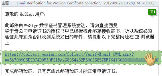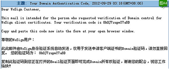 和 域名“wosign.net和wosign.com” 列入邮件服务器的信任列表中,或添加到您的地址簿、信任发件人中。此验证码为系统自动发送的,您必须想办法能收到系统验