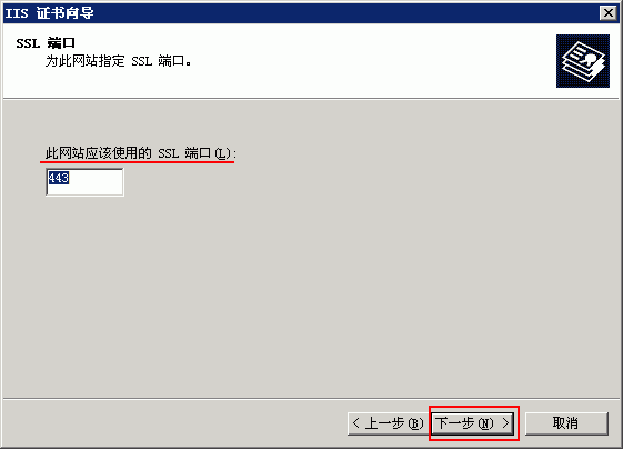 SSL缺省端口为443端口,请不要修改。如果您使用其他端口如:448,则访问时必须输入:https://www.domain.com:448/。同时,请注意:如果您的服务器需要部署多个SSL,则需要确定一个常用网站使用443端口,而其他网站则使用其他端口,并在网页中设置链接到需要设置的端口中。
