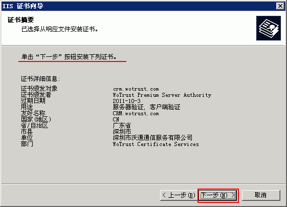 系统会显示详细的证书信息,直接点击“下一步”即可: