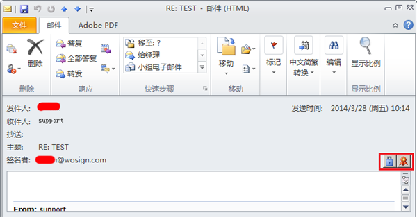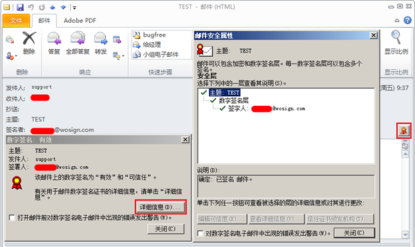 3.使用 Outlook 2010查看经过数字签名的邮件