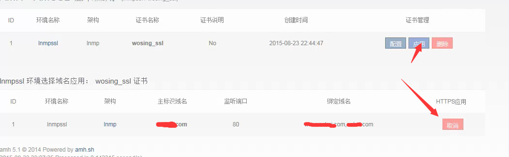 完成创建证书之后,选择刚刚配置完成的证书模块,点击应用,然后应用在对应的域名。