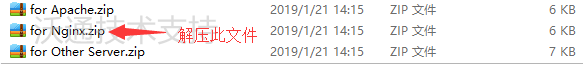 成功在沃通申请证书后,会得到一个有密码的压缩包文件,输入证书密码后解压得到五个文件:for Apache、for Nginx、for Other Server,这是证书的几种格式,这里需要用到for Ngnix格式的证书。