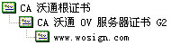 服务器只需要安装交叉签名根证书和 WoSign中级根证书即可,不同的SSL证书对应不同中级根证书格式文件,请按照以下表格下载正确的中级根证书文件。