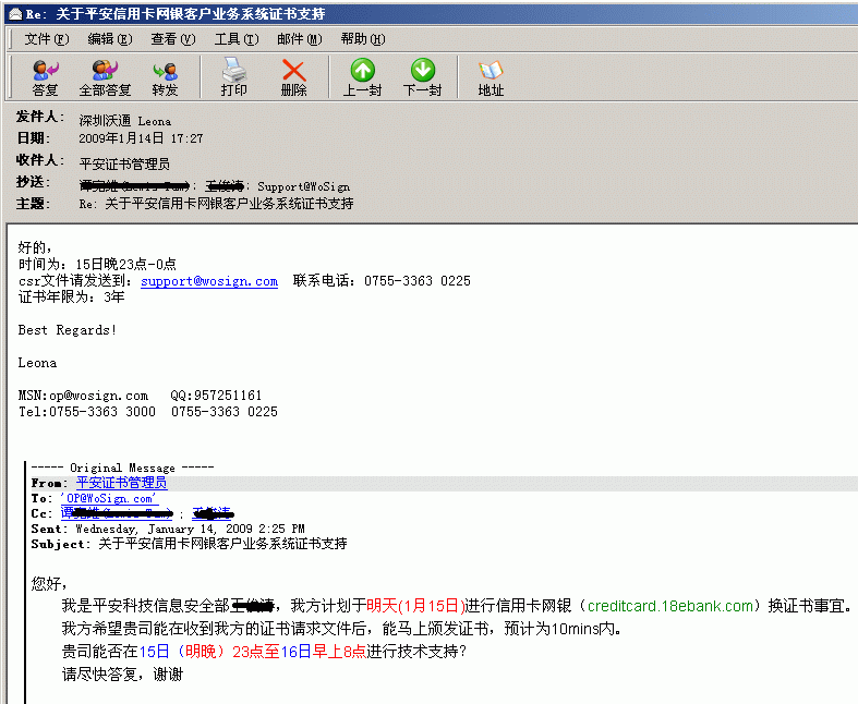 “我们的网银系统要求在正式推出之前进行大量的严格测试,其他数字证书颁发机构无法满足我们所要求的本地化服务,而 WoSign SSL证书和VeriSign 的 SSL证书一样支持所有浏览器,同时所有证书都全面支持中文。更重要的是,你们能密切配合和满足我们的测试工作需求和证书实时更新需求。真是非常感谢你们,你们的服务真的相当的好。。。。。。相当的有耐心 。。。。。。”