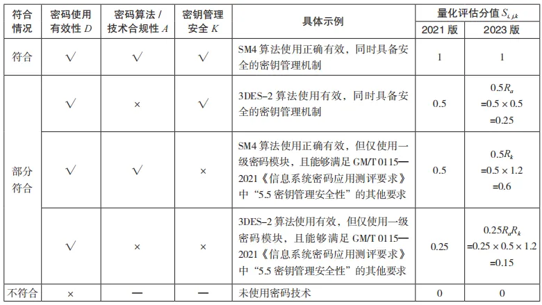 取值为 1。Rk的取值由是否使用相应等级密码模块和密钥管理的安全性决定。具体地,以三级系统为例,当使用一级密码模块且密钥管理符合 GM/T 0115—2021《信息系统密码应用测评要求》中“5.5 密钥管理安全性”的其他要求时,