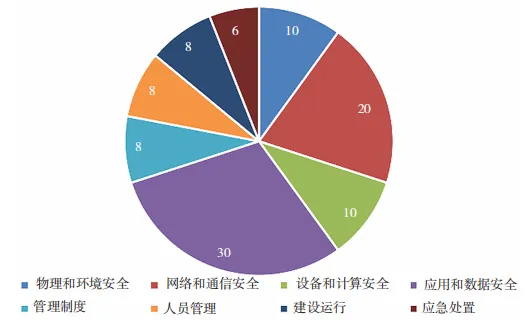 物理和环境安全、网络和通信安全、设备和计算安全、应用和数据安全、管理制度、人员管理、建设运行和应急处置 8 个安全层面的权值分别如图 3 所示。