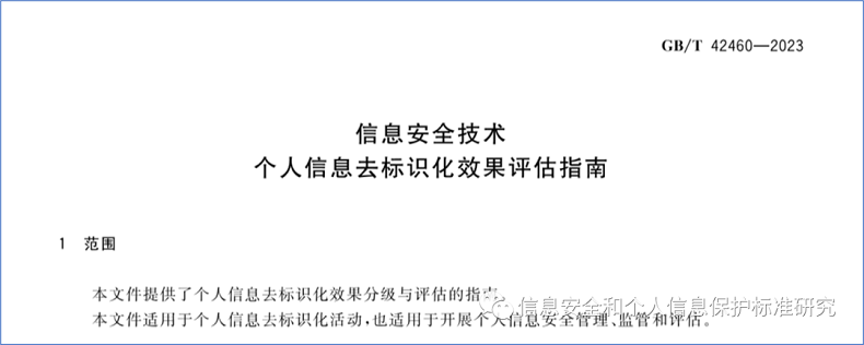 01:GB/T 42460-2023《信息安全技术 个人信息去标识化效果评估指南》