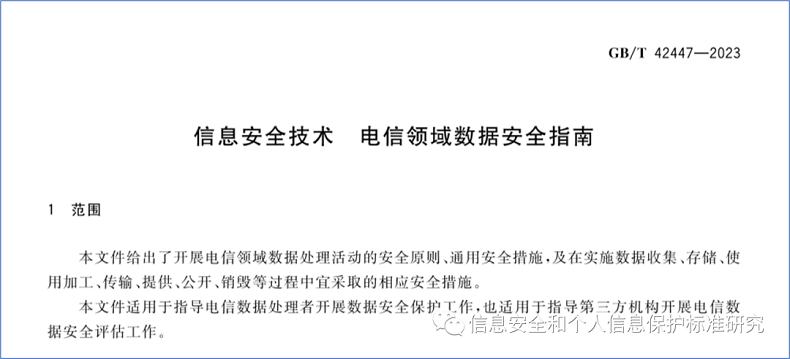 02:GB/T 42447-2023 《信息安全技术 电信领域数据安全指南》