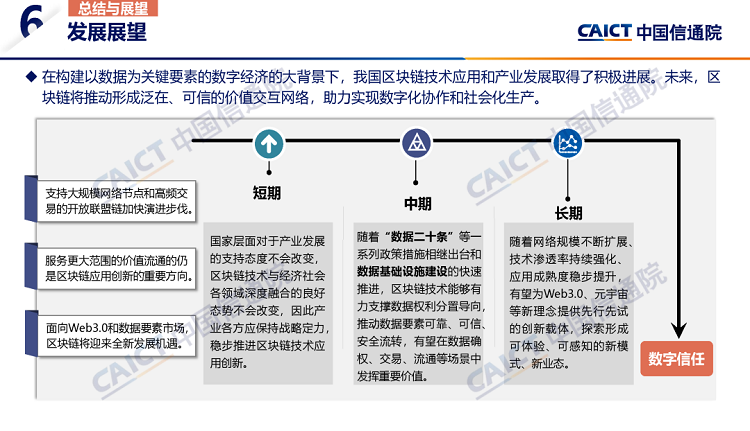 1. 区块链技术面向高扩展、高性能和高安全持续演进。当前,区块链技术沿公有链和联盟链两大技术路线分别演进,公有链聚焦高性能、高扩展性和高安全性强化技术创新,联盟链则面向自主化、广域化、规模化应用实现持续优化。当前融合二者优势的开放联盟链也迎来快速发展,有望成为Web3.0时代数据价值释放和协作共享的技术底座。