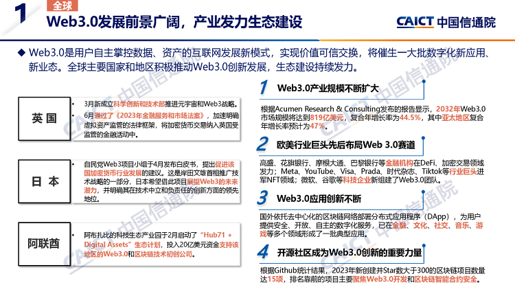 2023年12月7日,中国信息通信研究院(简称“中国信通院”)在“2023年Web3.0创新大赛暨颁奖典礼”上发布了《区块链白皮书(2023年)》并对白皮书进行了深度解读。