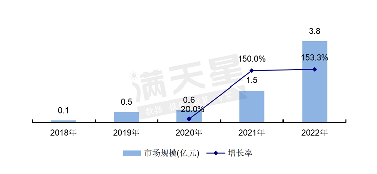 《中华人民共和国密码法》于2020年1月1日正式实施,其中明确了要开展商用密码应用安全性评估。密评工作现在主要依据的标准是国家市场监督管理总局、中国国家标准化管理委员会在2021年3月发布的《信息安全技术信息系统密码应用基本要求》,其中规定了信息系统第一级到第四级的密码应用的基本要求。2019年起各地商用密码应用安全性评估工作展开试点,市场规模大约为0.5亿元,到2022年市场规模达到3.8亿。