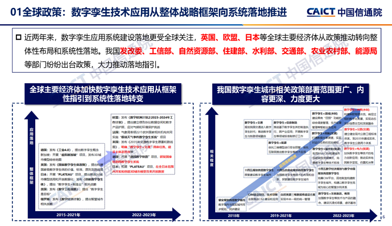 (一) 全球政策:数字孪生技术应用从整体战略框架向系统落地推进