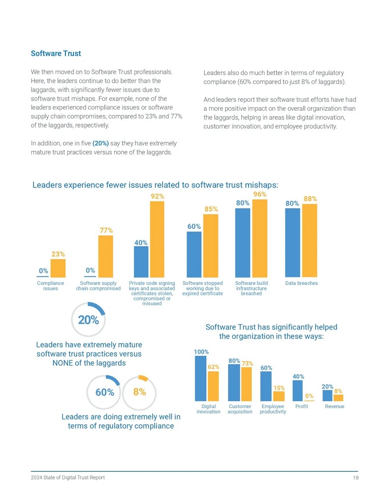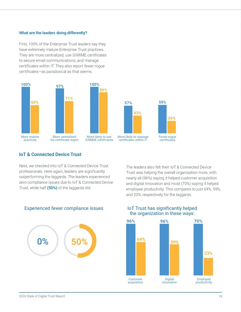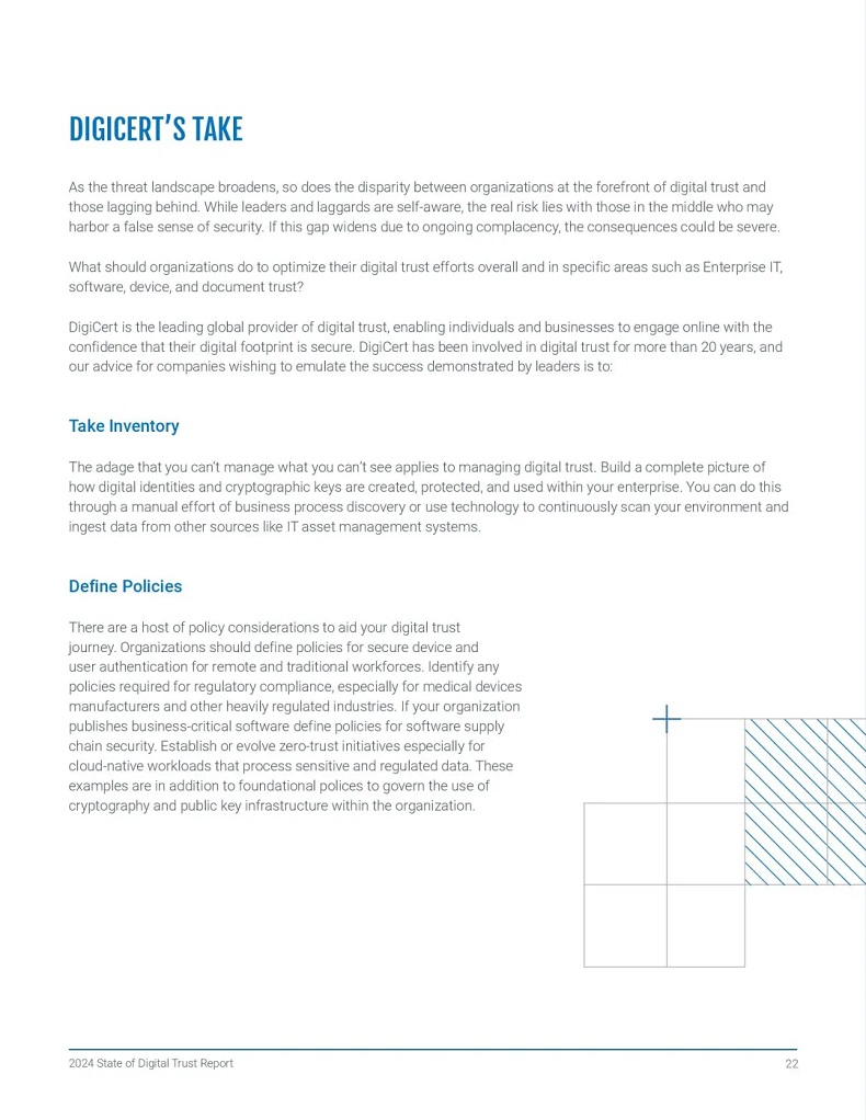 2022年,DigiCert关于数字信任状况的第一份报告显示,100%的受访领导者了解数字信任在其组织的网络健康中发挥的重要作用。