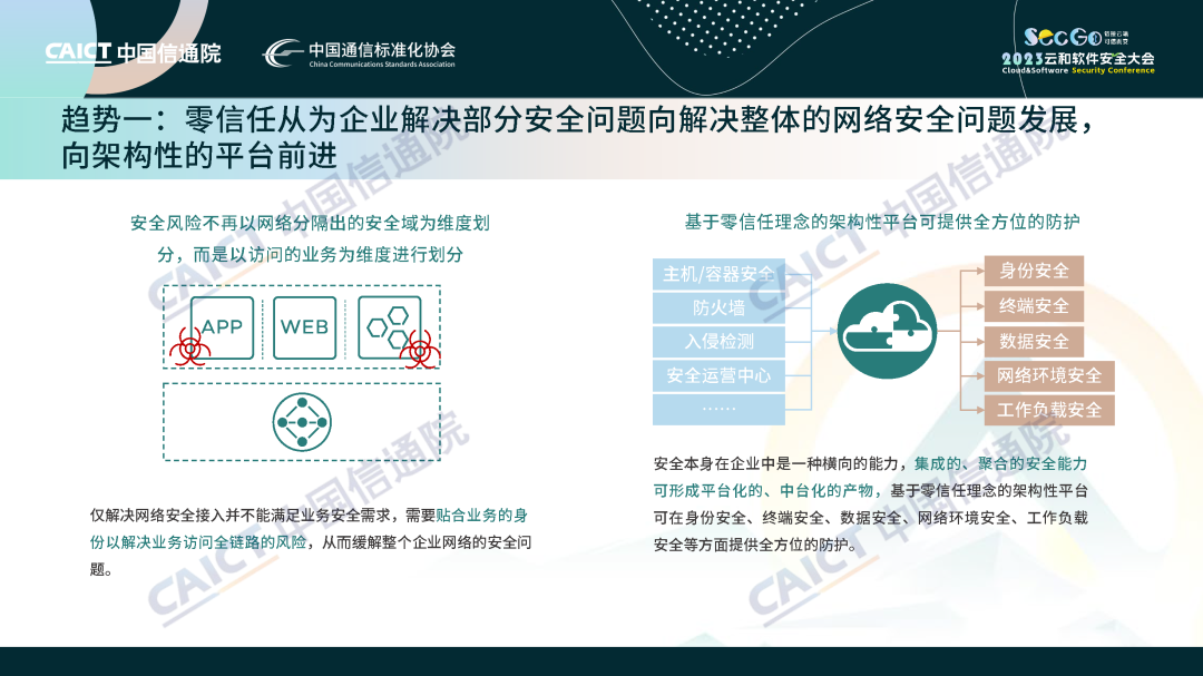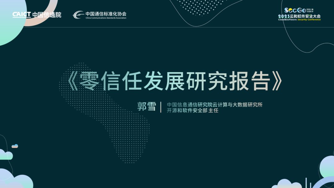 2023年8月25日,中国信息通信研究院(简称“中国信通院”)在“2023 SecGo云和软件安全大会”上发布了《零信任发展研究报告(2023年)》。中国信通院云计算与大数据研究所开源和软件安全部主任郭雪对报告进行了解读。
