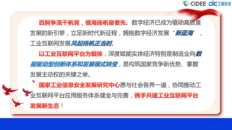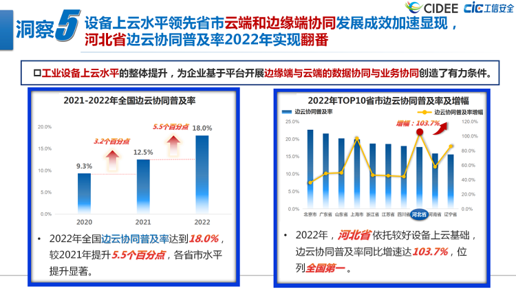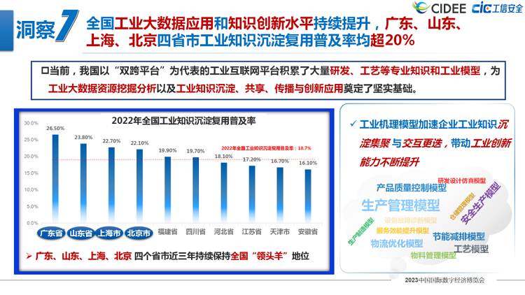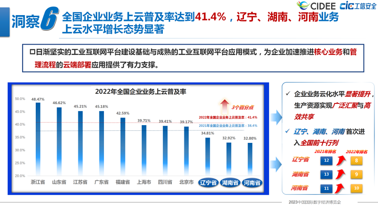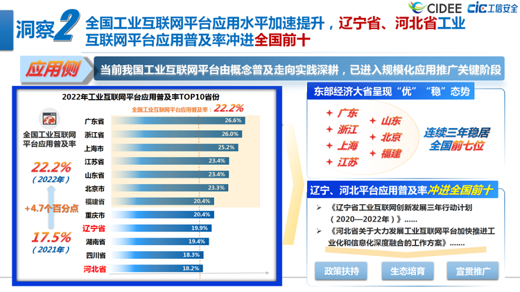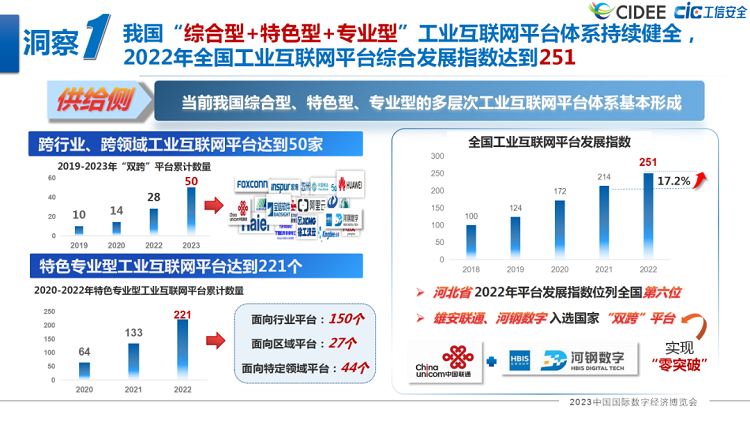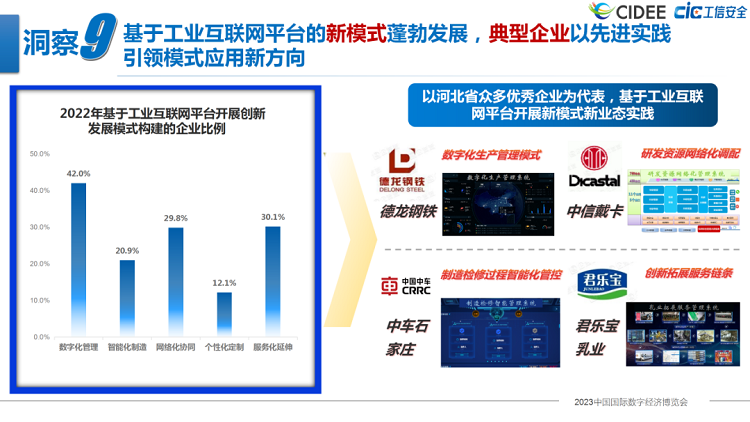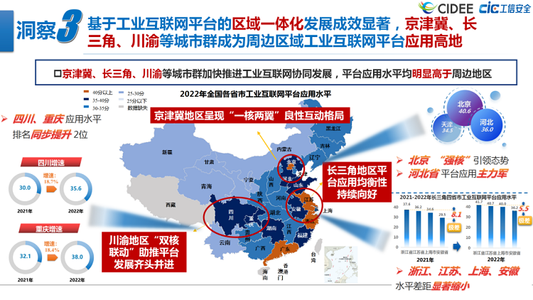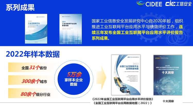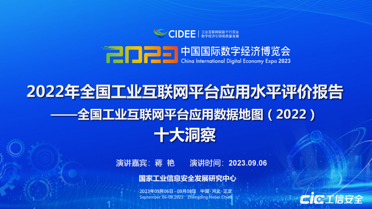 国家工业信息安全发展研究中心党委书记、副主任蒋艳受邀出席并在大会开幕式上发布《2022年全国工业互联网平台应用水平评价报告》暨《全国工业互联网平台应用数据地图(2022)》十大洞察,基于截至2022年底来自全国31个省份、300余个城市与80余个细分行业的5万余家样本企业数据测算分析,客观全面展现我国工业互联网平台推广应用整体态势与发展成效,得到社会各界广泛关注。