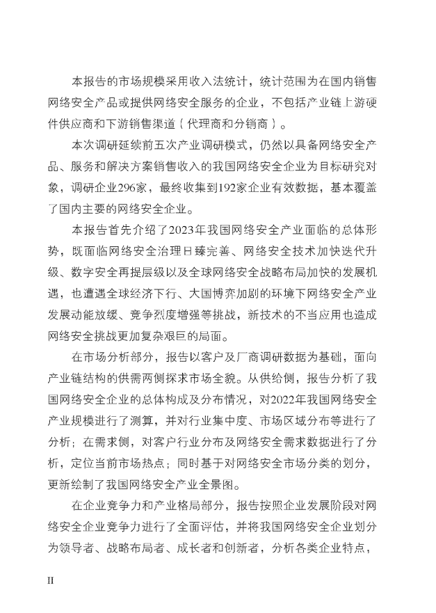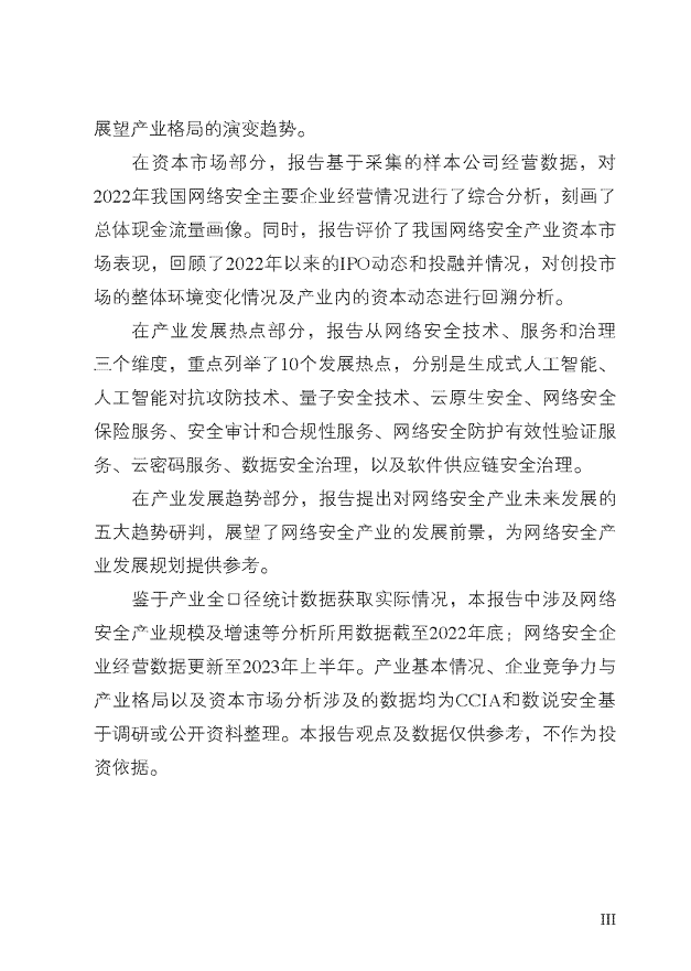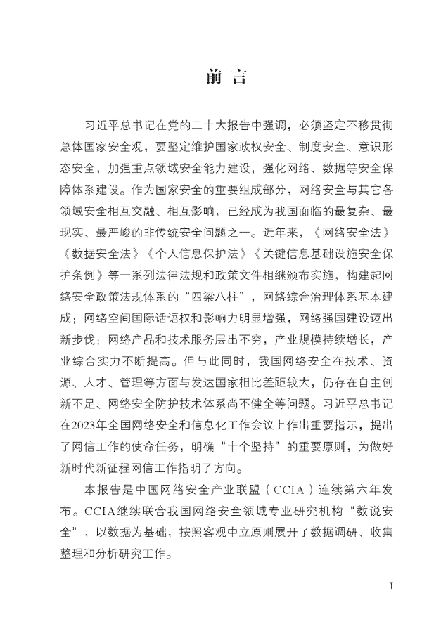《中国网络安全产业分析报告(2023年)》(以下简称“《报告》”)由中国网络安全产业联盟(CCIA)发布,中国电子技术标准化研究院、数说安全提供研究支持。2023年9月16日中国网络安全产业联盟在国家网络安全周上发布PPT版本,本篇文章为报告全文。
