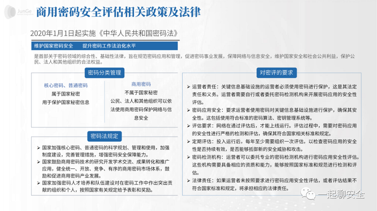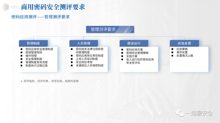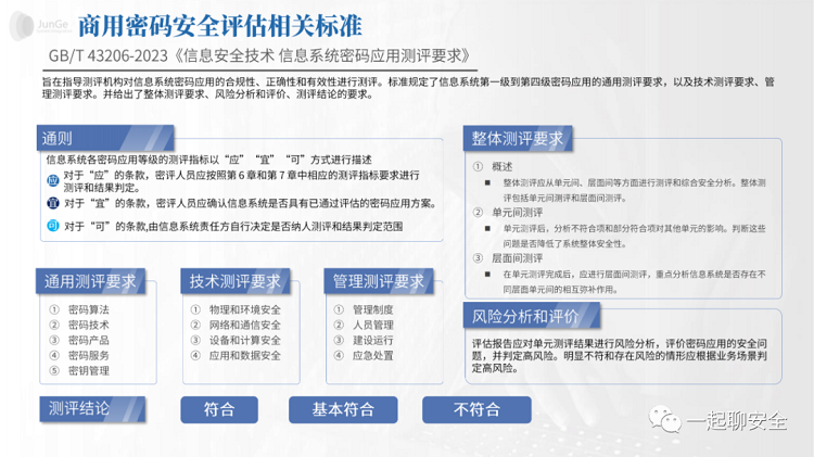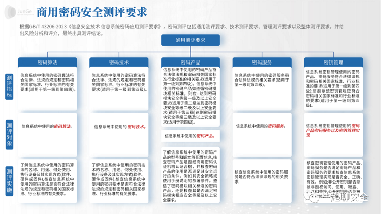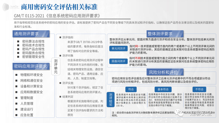 商用密码应用安全性评估主要包括对商用密码技术、产品和服务的合规性、正确性和有效性的检测分析和评估验证。根据GB/T 39786-2021《信息安全技术 信息系统密码应用基本要求》,密评涵盖了从物理和环境安全、网络和通信安全、设备和计算安全到应用和数据安全的各个层面,以及管理制度、人员管理、建设运行和应急处置等管理方面的要求。