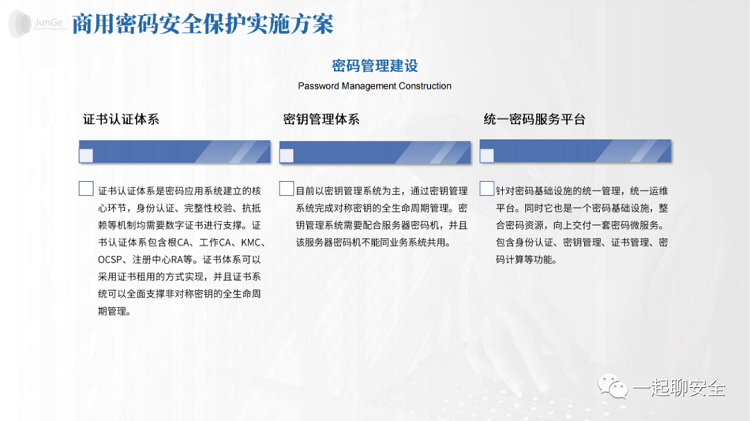 形成具体的建设/改造方案后,由相关专家组对方案进行评审。待方案通过评审,信息系统建设单位(密码集成商/密码厂商)就会开展系统密码应用的建设工作。完成建设后由第三方密评机构对建设后的密码应用安全性进行评估(三级及以上的系统需要每年开展密评工作),评估工作通过后则由密评机构编制《密码应用方案评估报告》、《密码应用安全性评估报告》,评估不通过,则针对该系统不符合标准的地方进行整改,直至通过安全性评估。