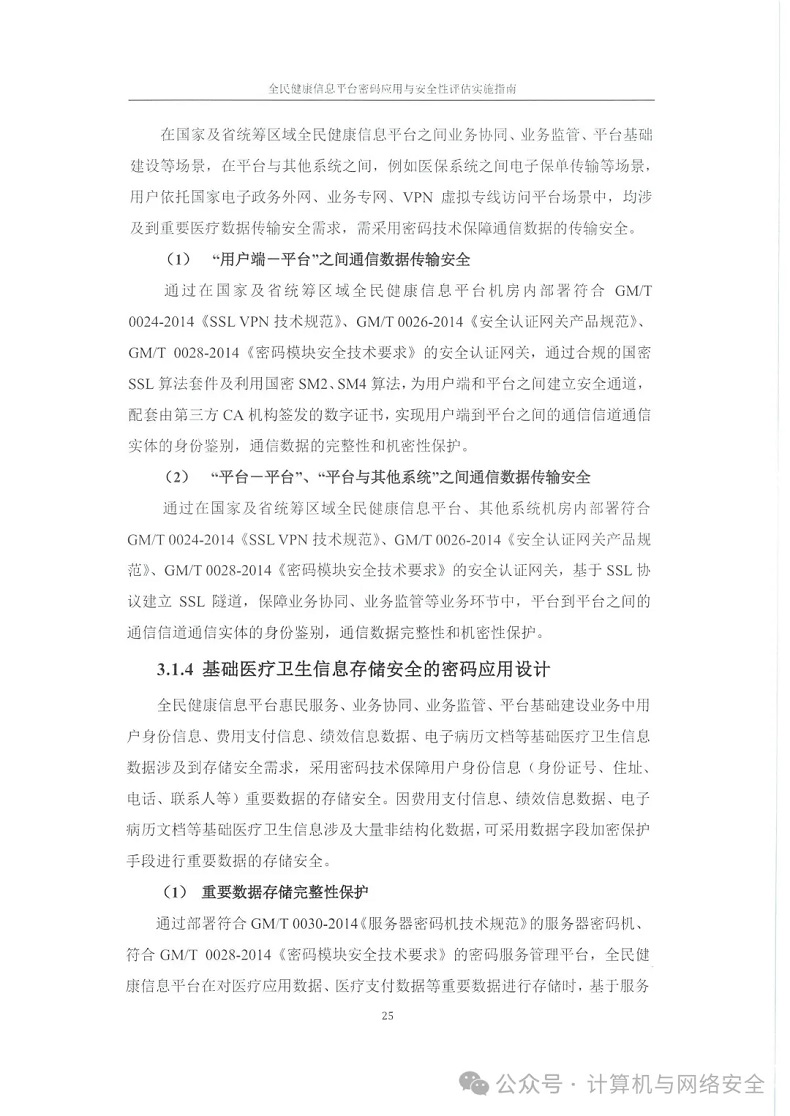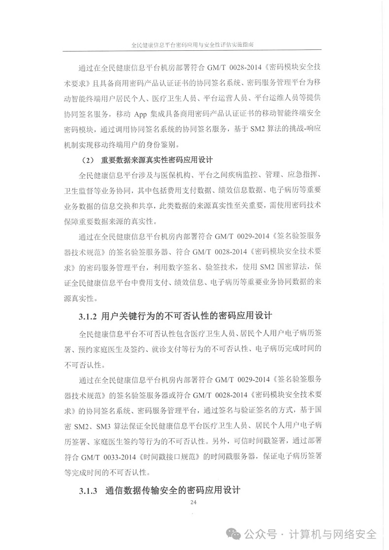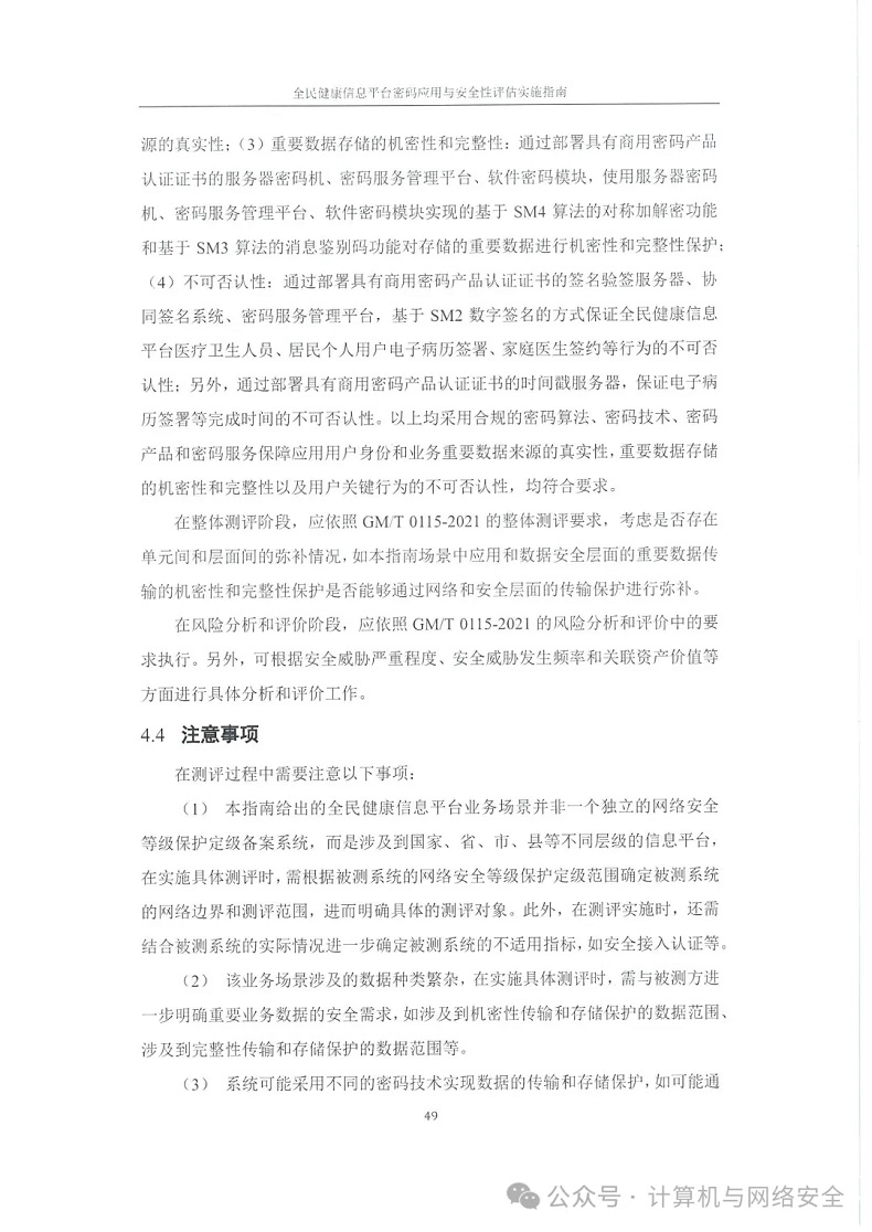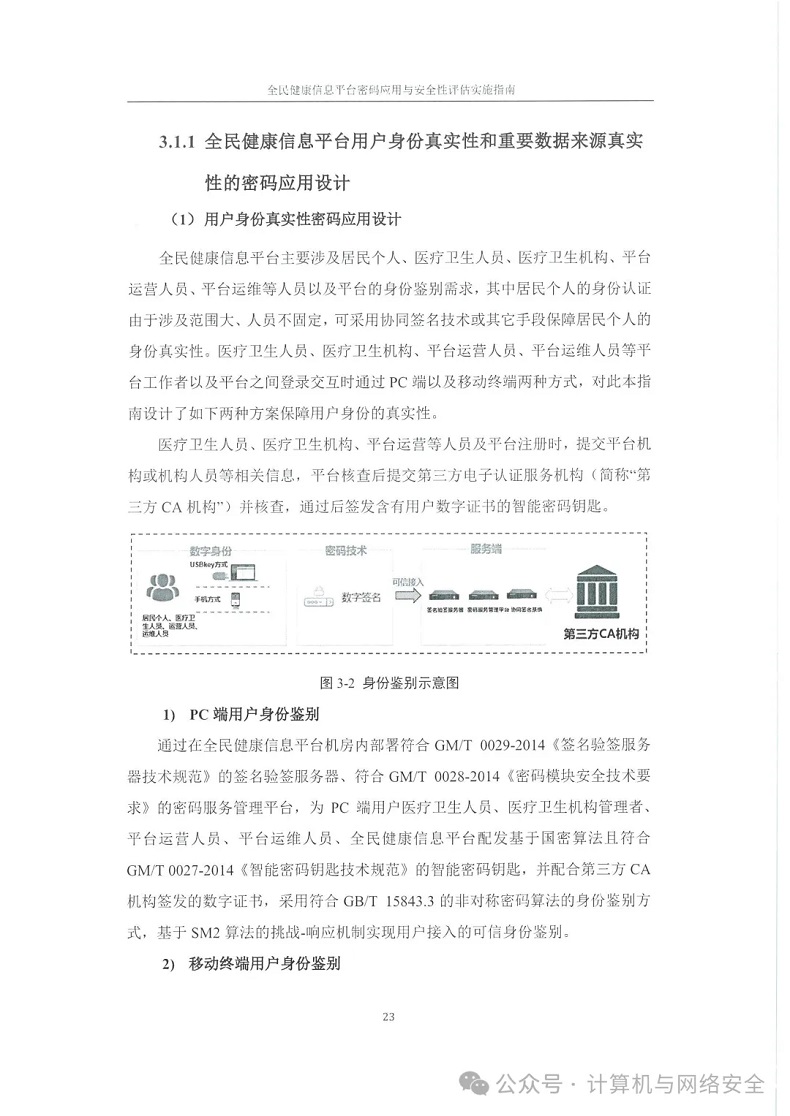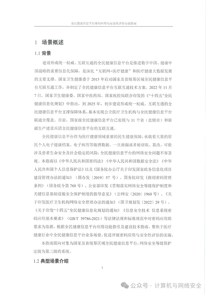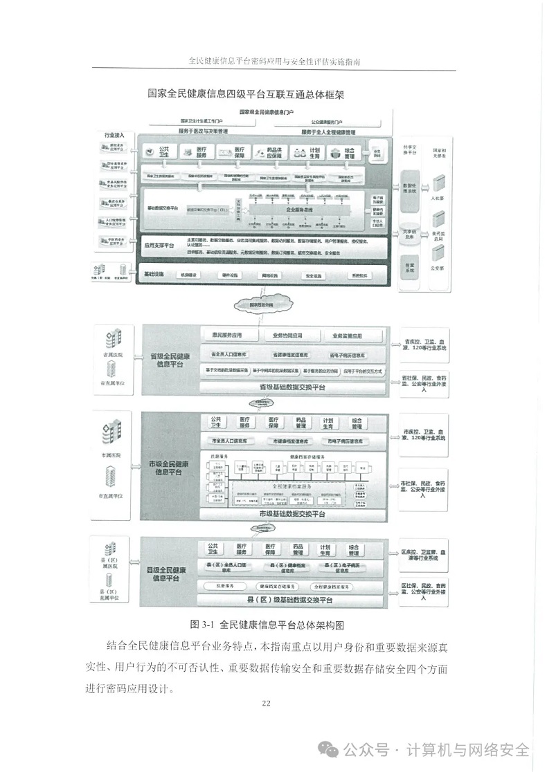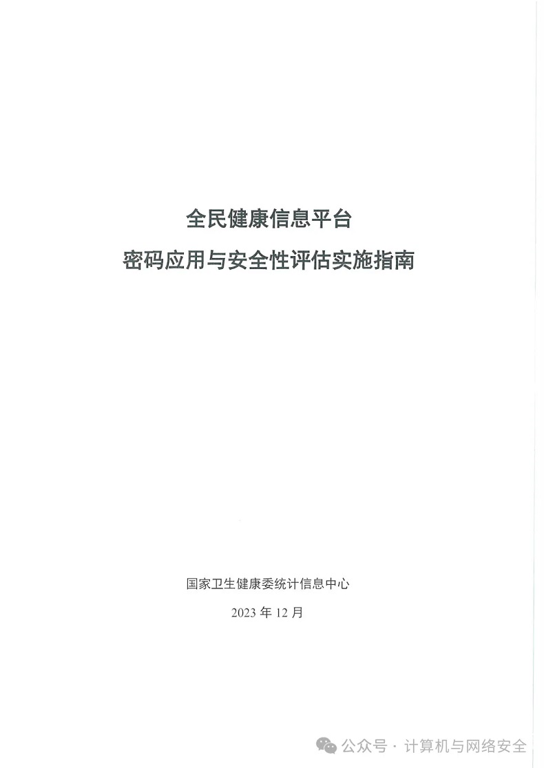 为贯彻落实《密码法》,促进卫生健康行业正确合规有效使用商用密码,指导、推进行业密码应用。由国家密码管理局、国家卫生健康委组织,国家卫生健康委统计信息中心牵头编制了《卫生健康行业医疗机构场景密码应用与安全性评估实施指南》《全民健康信息平台密码应用与安全性评估实施指南》,并通过了国家密码管理局评审,供参考使用。