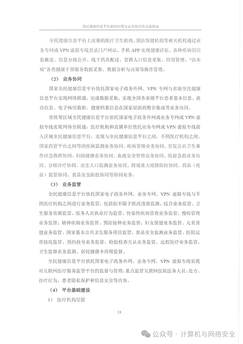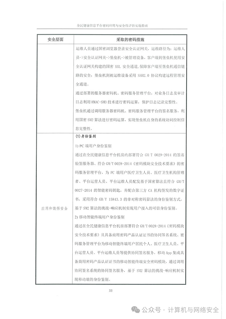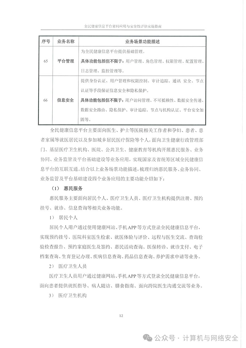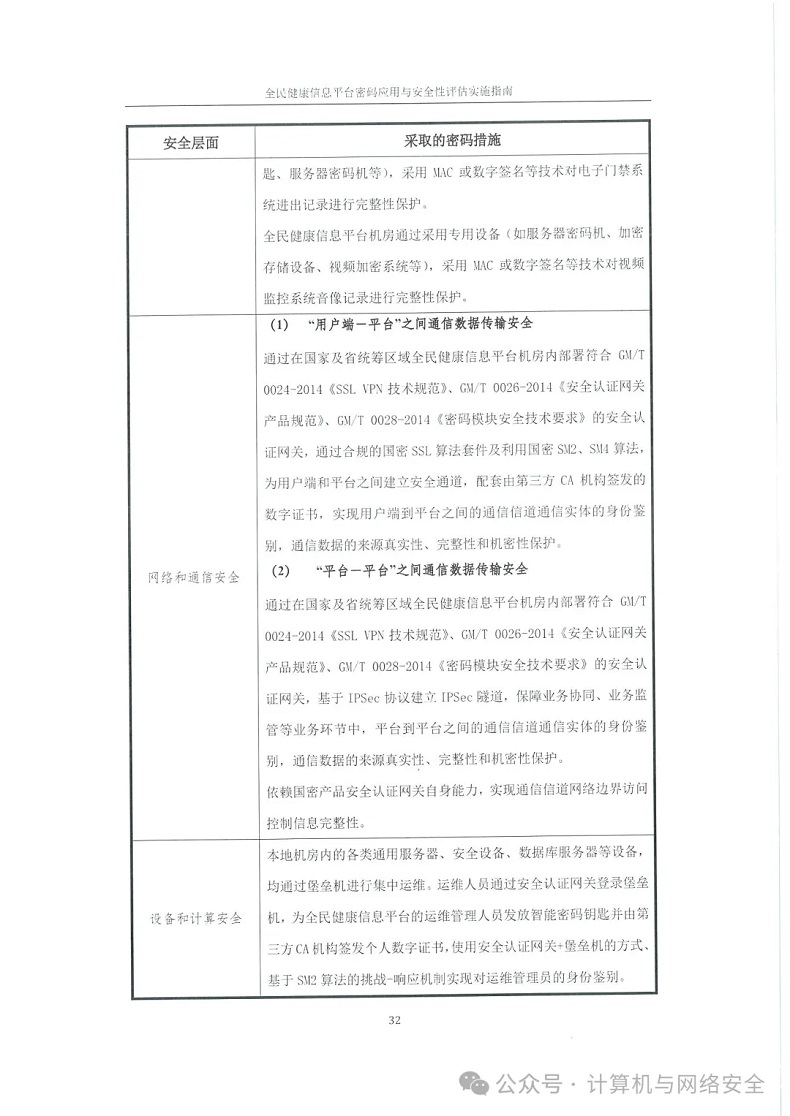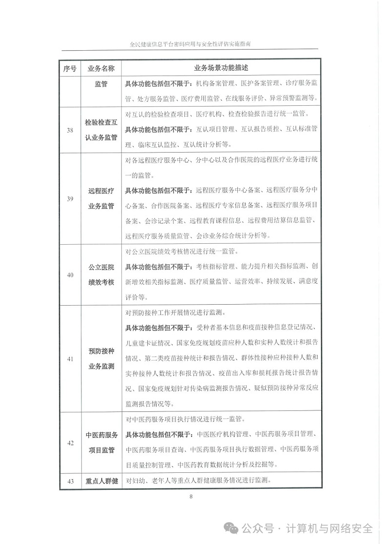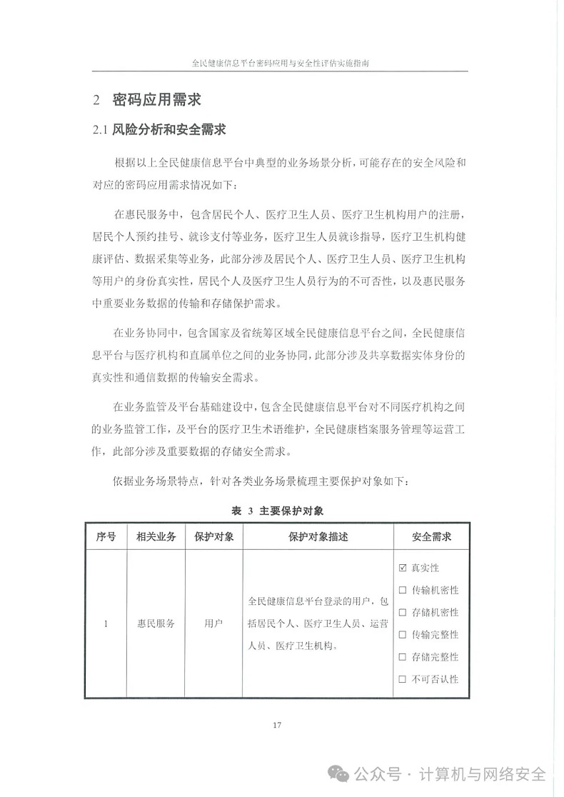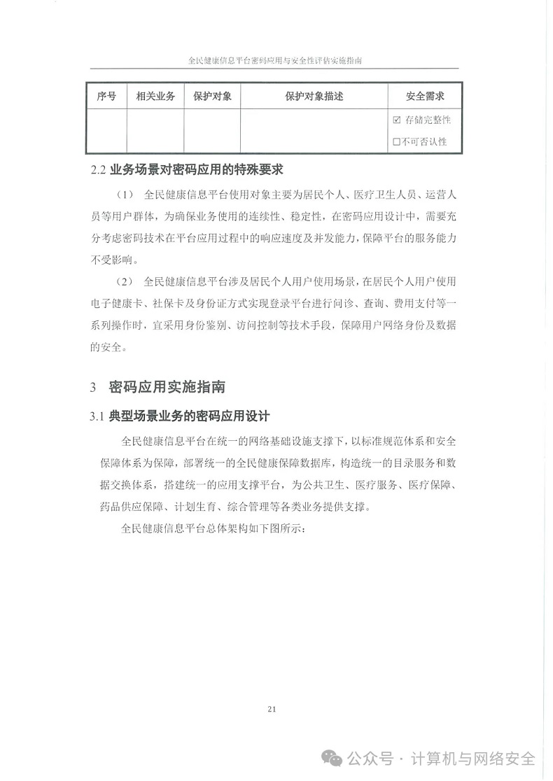 为贯彻落实《密码法》,促进卫生健康行业正确合规有效使用商用密码,指导、推进行业密码应用。由国家密码管理局、国家卫生健康委组织,国家卫生健康委统计信息中心牵头编制了《卫生健康行业医疗机构场景密码应用与安全性评估实施指南》《全民健康信息平台密码应用与安全性评估实施指南》,并通过了国家密码管理局评审,供参考使用。
