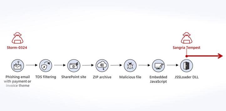 攻击者过去安装的攻击序列使用发票和付款主题的诱饵电子邮件来诱骗用户下载分发JSSLoader的SharePoint托管的ZIP存档文件,JSSLoader是一种能够分析受感染计算机并加载其他有效负载的恶意软件加载程序。