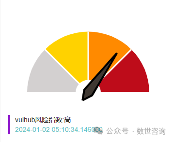 截止2024年1月2日,VULHUB通过对近期漏洞风险状况进行综合评估计算得出当前的漏洞风险指数为“高”。