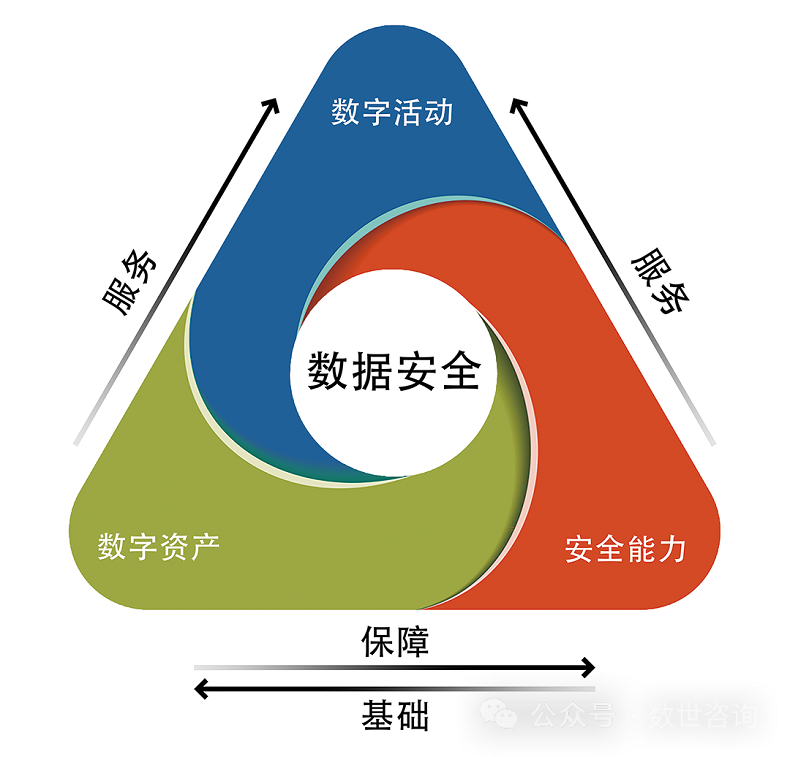 ● 数世咨询于2023年将“网络安全三元论”迭代并升级为“以安全能力、数字资产和数字活动为三元素,以数据安全为核心目标,即三元一核的数字安全三元论”,以适应数字中国建设的进程。