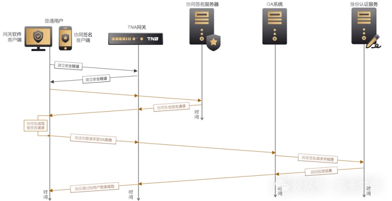 此过程中,根据实际方案需求的不同,身份认证服务可通过TNA网关、密码服务管理平台或签名验签服务器等密码产品实现。