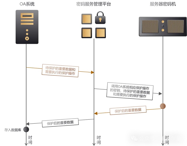 (4)密码服务管理平台将接收到的保护后的重要数据发送给OA系统。