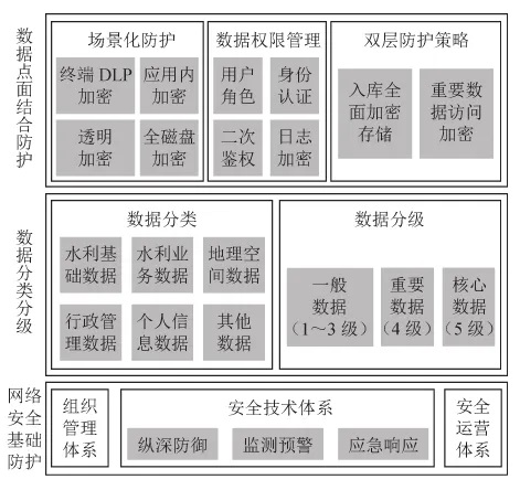 根据国家网络安全相关法律法规要求,遵循行业网络安全顶层设计,落实网络安全等级保护和水利网络安全保护技术规范等相关标准要求,水利部已基本建立由组织管理、安全技术、安全运营等体系组成的网络安全防护基础。面对从网络向数据的保护对象变化,应充分利用已有网络安全基础防护开展数据安全综合防护体系建设,并在建设中协同推进网络和数据的安全体系优化完善。)