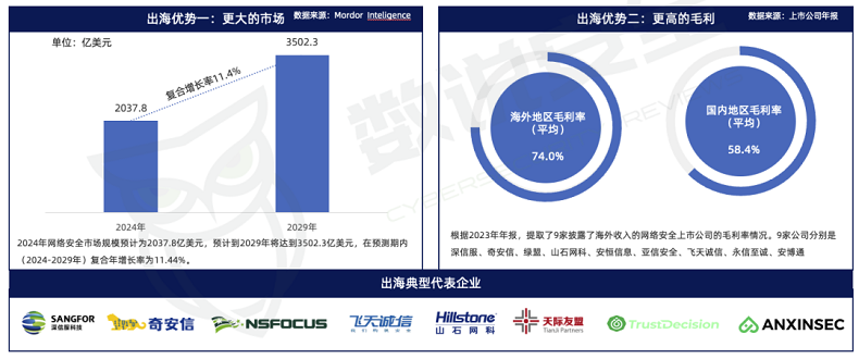 面对国内市场的激烈竞争和日趋成熟的市场环境,越来越多的中国网络安全企业开始将目光投向海外,力图在全球市场上寻求新的增长点和发展空间。目前,约有100家厂商在港澳地区积极开展业务,同时数十家厂商在新加坡市场进行运营,其中一些已经在本地建立了法人实体。