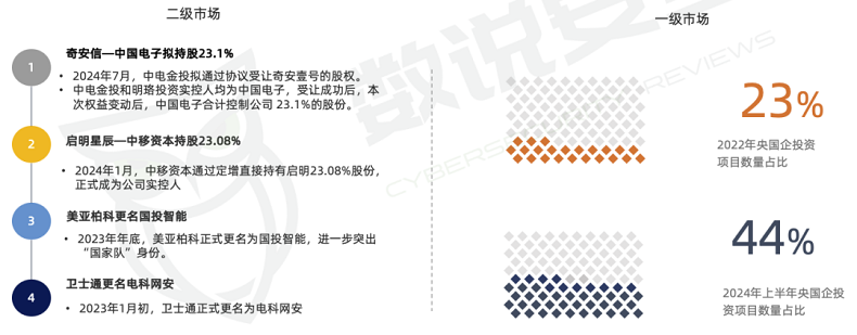 在网络安全领域,央国企在对安全公司的投资方面表现出了积极的态度,不管是一级市场还是二级市场央国企的影响力在逐步提升。