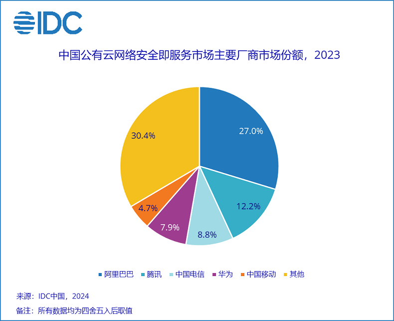 国际数据公司(IDC)于2024年10月正式发布了针对中国公有云网络安全即服务市场份额研究报告——《中国公有云网络安全即服务市场份额,2023:规模稳步增长,技术创新引领市场格局》(Doc#CHC52642124 ,2024年10月)。报告针对2023年中国公有云网络安全即服务市场的规模、增长速度、主要玩家、市场与技术的发展趋势等内容进行了详细研究。
