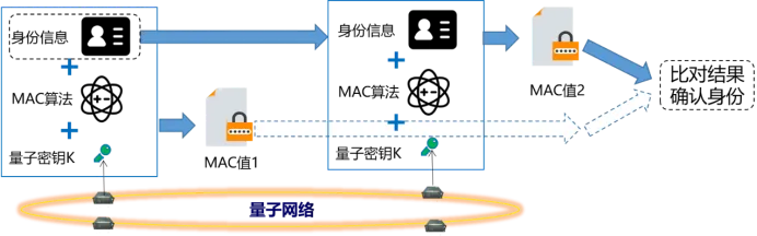 基于量子密钥的认证增强技术,则在现有PKI认证体系基础上,基于量子密钥,通过消息认证码技术,再次进行身份认证,从而实现对身份认证的异构增强。如果PKI体系不安全,量子认证增强方案具有二次安全防御作用。