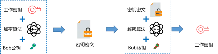 现有公私钥体系的加密/解密过程常常用来解决会话密钥的配送问题。如下图所示。