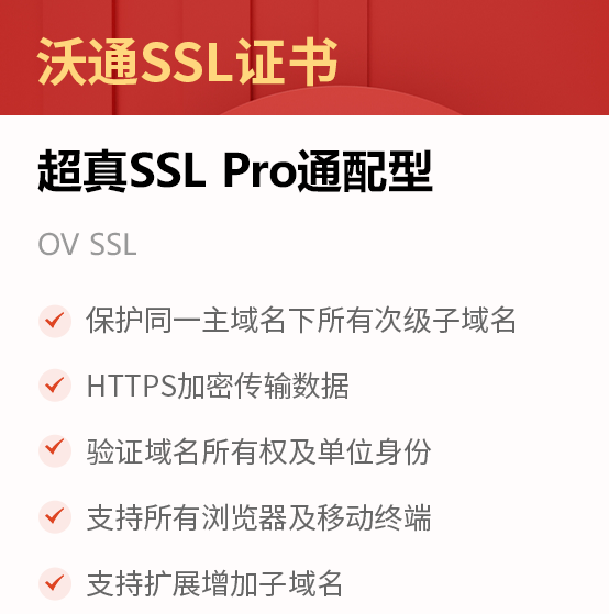 沃通SSL证书双节钜惠活动期间,精选沃通超快SSL通配型、超真SSL通配型、超真SSL Pro通配型、IP SSL证书等几款热销产品,助力数据安全保护。沃通通配型SSL证书支持保护同一域名下所有次级子域名,支持随时增加域名、扩展性强;提供DV级别、OV级别验证,满足各类网站、web系统、移动应用、小程序、H5等应用场景使用需求。沃通IP SSL证书支持保护公网IP,对于还没有启用域名的主机站点,部署IP SSL证书可保护客户端与IP服务器之间的数据传输安全、验证IP服务器身份。